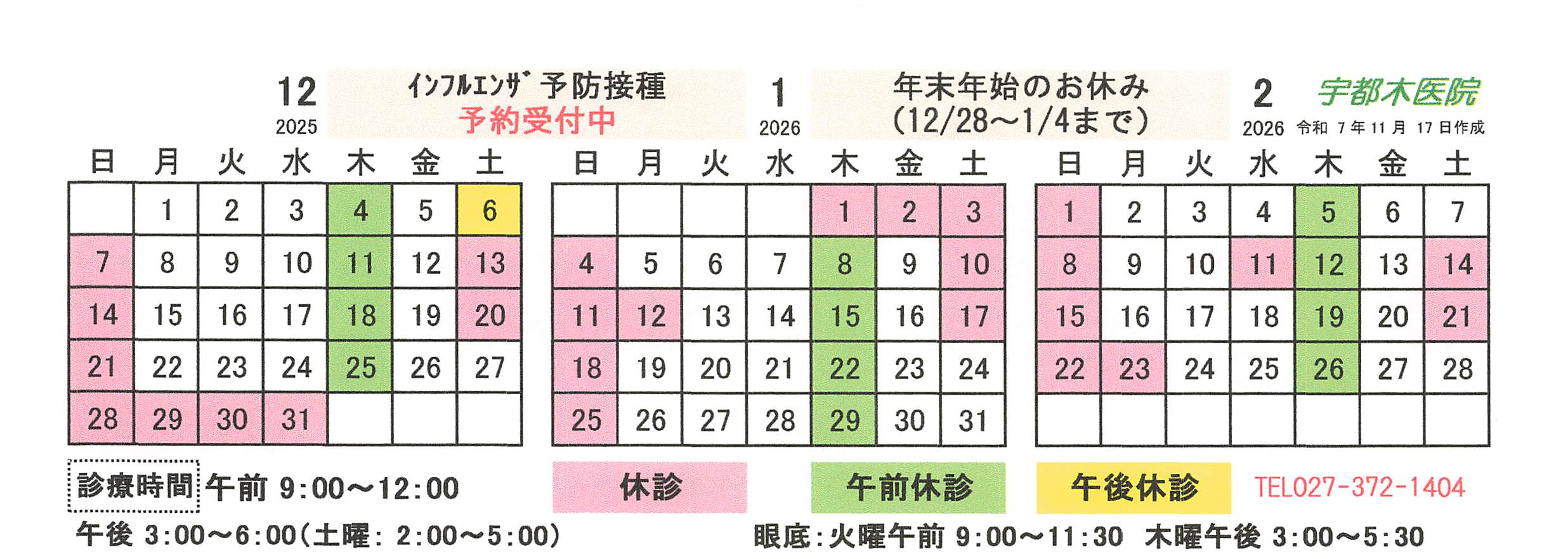 休診日:木曜午前、第二、第三土曜 日曜、祭日